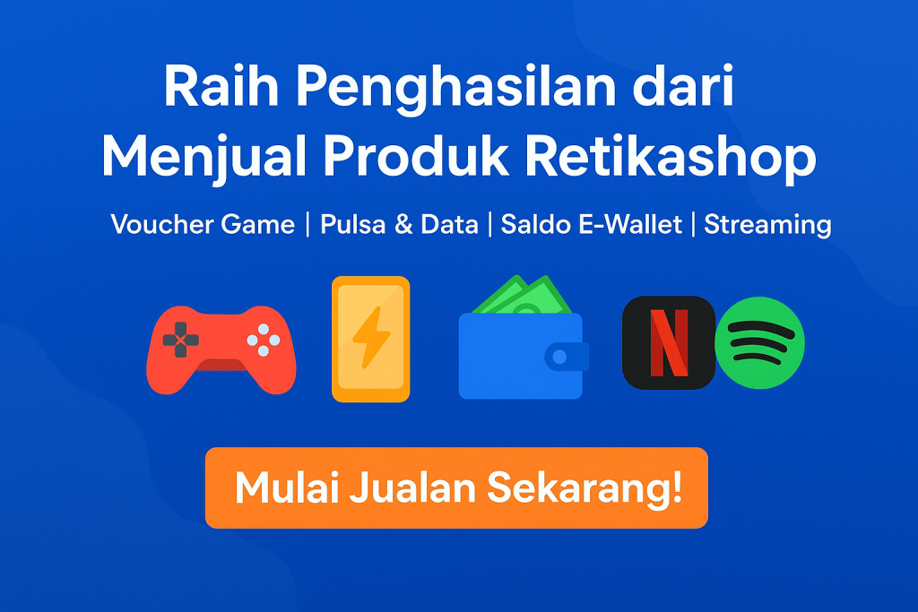 Nah, di sinilah Retikashop hadir sebagai solusi. Retikashop menyediakan berbagai produk digital populer dengan harga khusus bagi membernya. Anda bisa membeli produk di Retikashop dengan harga lebih murah, lalu menjualnya kembali dengan margin keuntungan. Sederhana, cepat, dan sangat fleksibel.